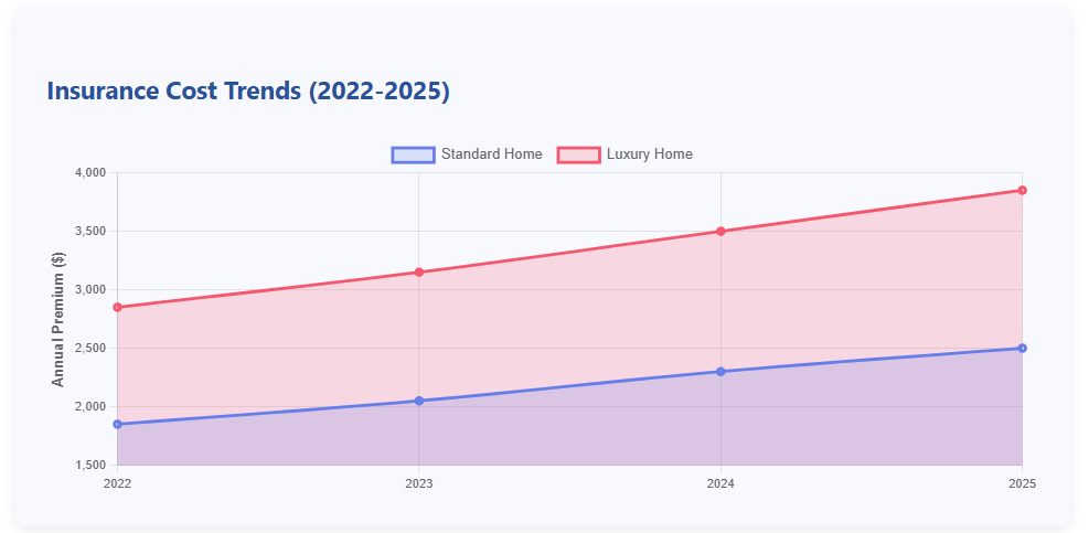 Plan for $2,200-$2,800 annually for a standard home, plus $600-$1,200 for flood insurance if desired. Luxury homes may see premiums of $3,200-$4,500. Factor this into your monthly budget alongside your mortgage—most lenders require proof of insurance before closing.