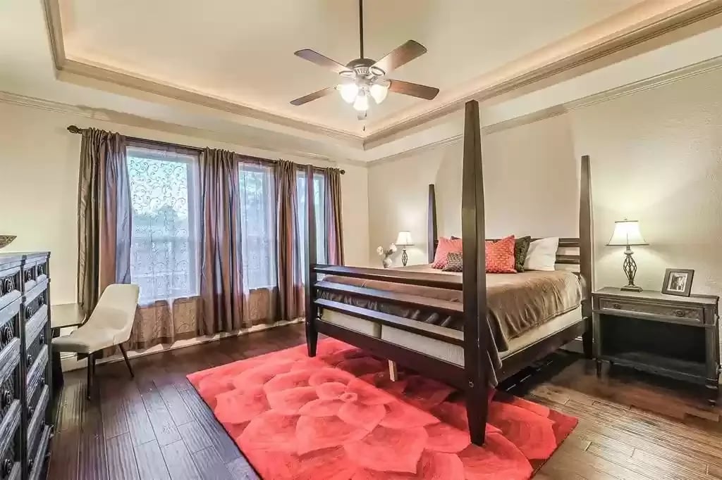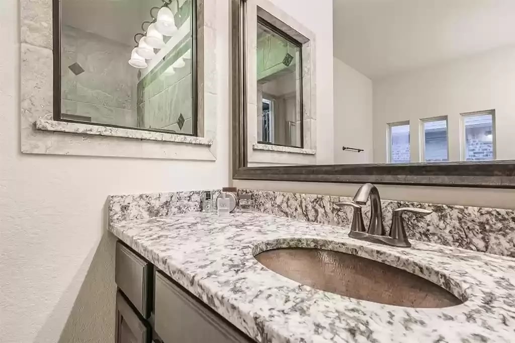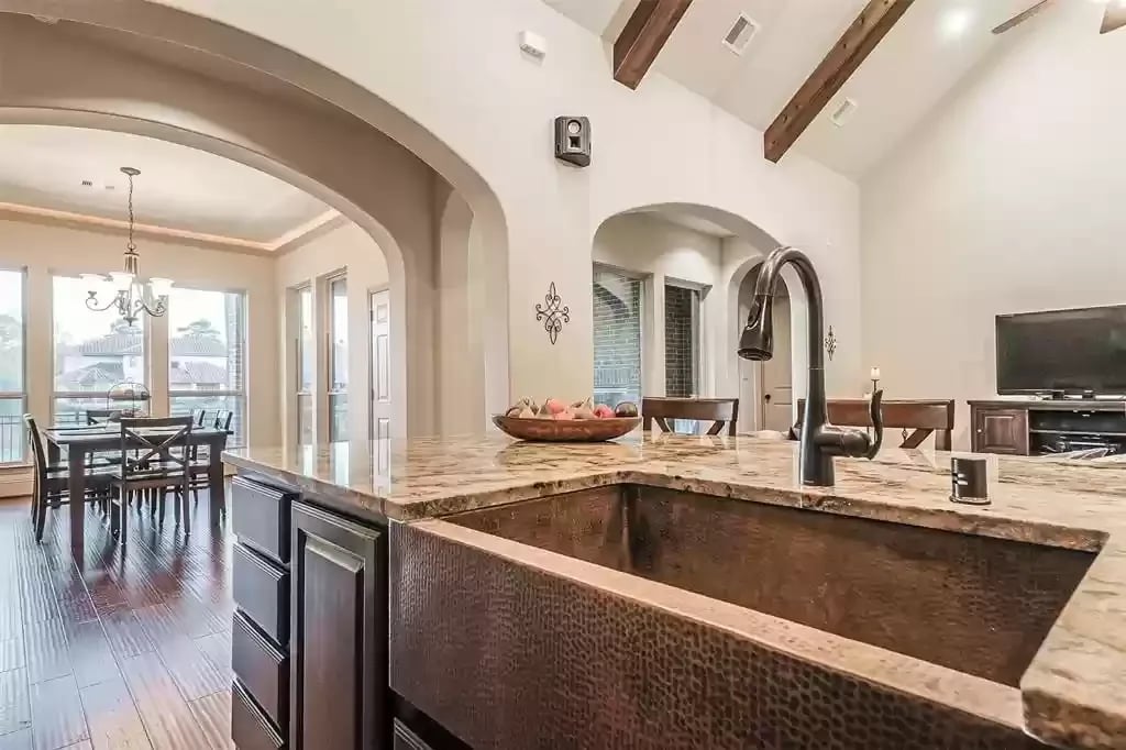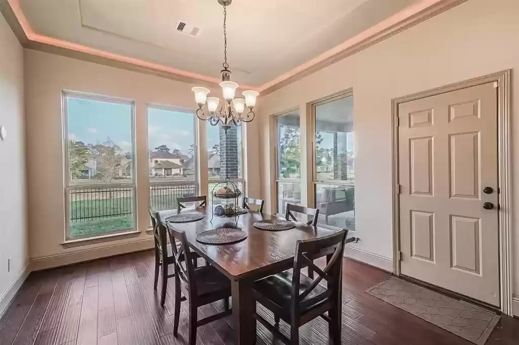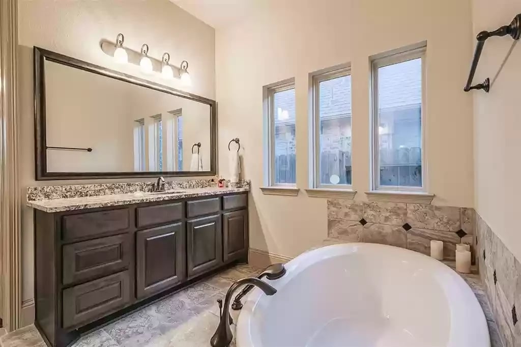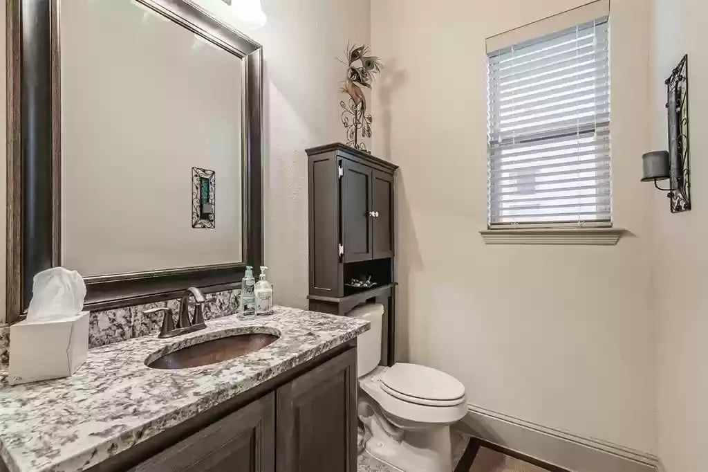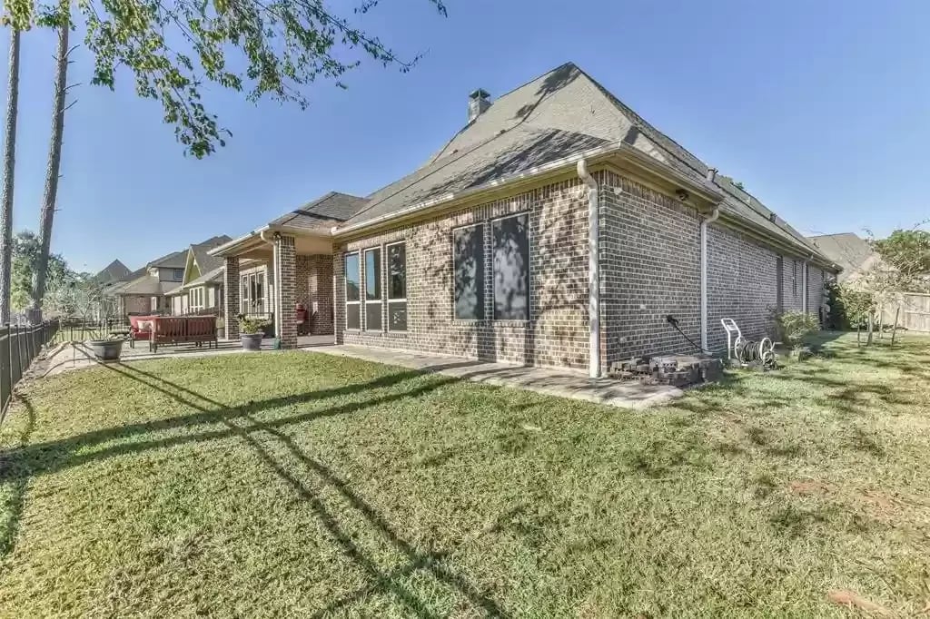 This beautiful SINGLE STORY French Country Darling Home is located in the gated subdivision of Alden Woods and is LOADED WITH UPGRADES! The WATERFRONT lot is private and serene. With soaring ceilings and beautiful upgrades, this OPEN FLOORPLAN is great for entertaining. The chef's kitchen features UPGRADED GRANITE COUNTERS, COPPER FARMHOUSE SINK, BOSCH DISHWASHER, and PROFESSIONAL-GRADE GOURMET COOKTOP and VENT HOOD. Custom ELFA closet in the Owner's retreat. The EXTENDED COVERED PATIO features an OUTDOOR GAS FIREPLACE and brick pavers. The third car garage has been converted to a temperature-controlled home gym with SEPARATE A/C system but can be converted back. The fourth bedroom has been converted into a media room and prewired for a projector. An eight security camera system is included. The home has been pre-plumbed for a water softener and has a 22kW WHOLE-HOME GENERAC GENERATOR! You will love the tasteful and functional updates on this beautiful home.