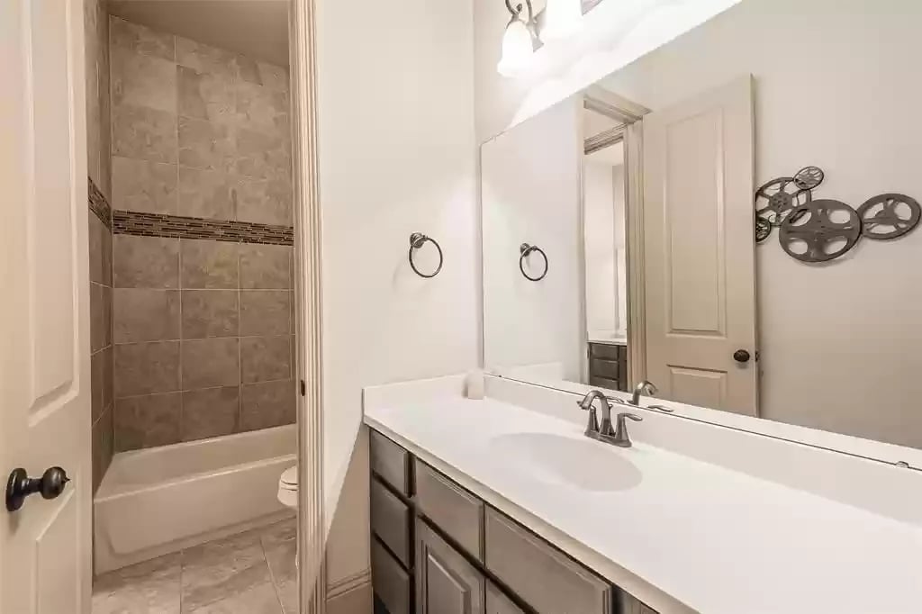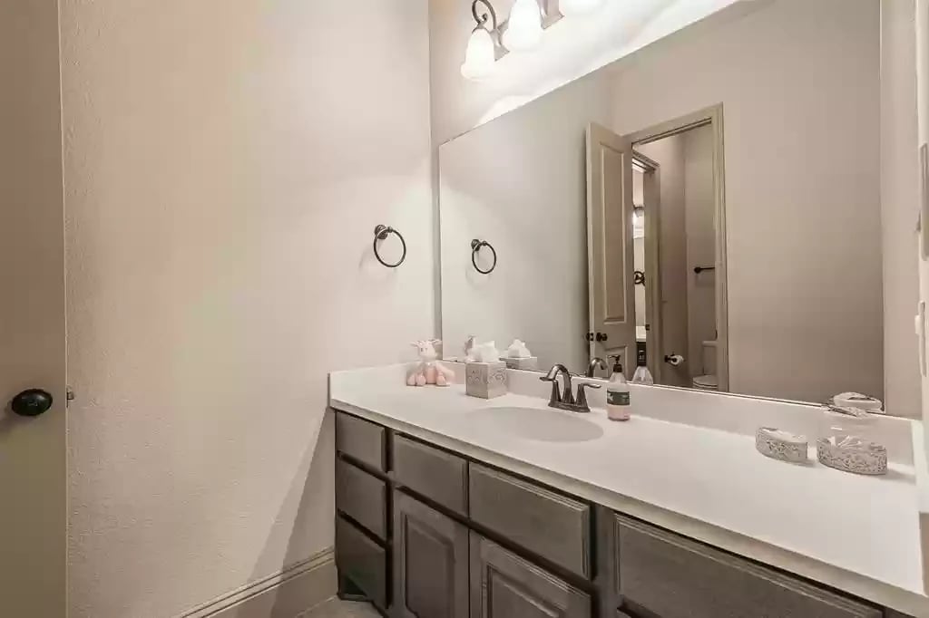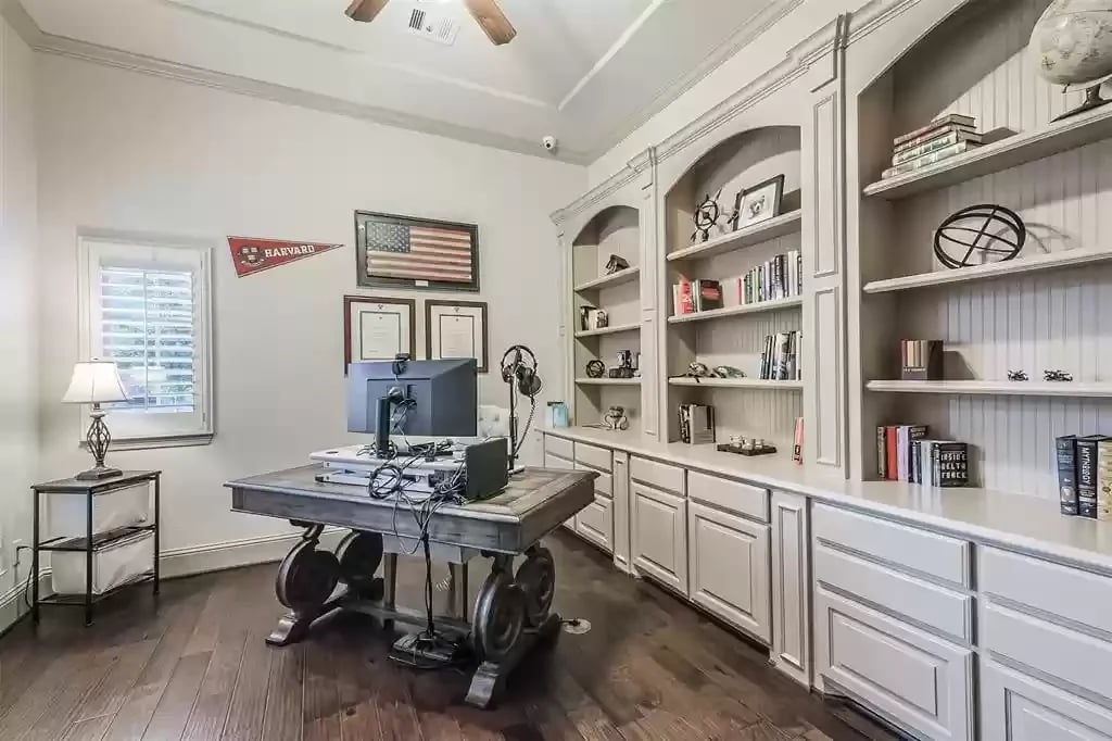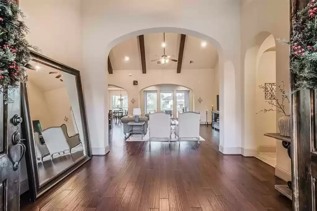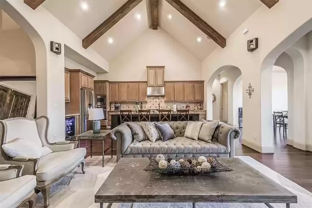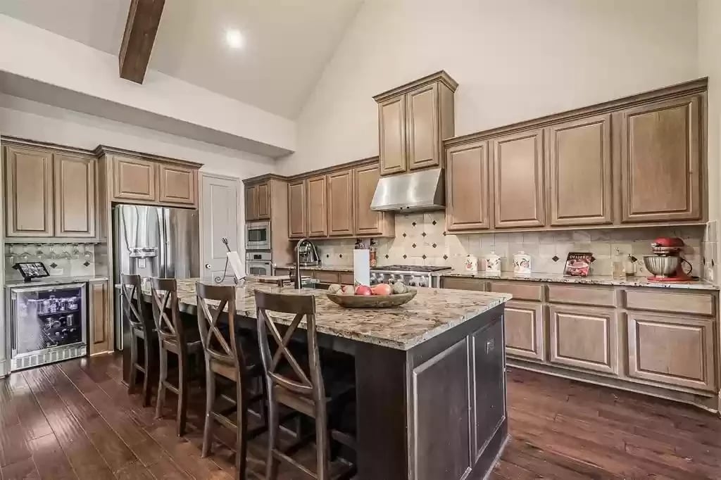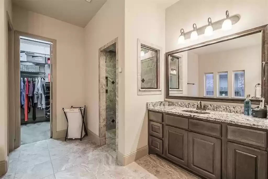 This beautiful SINGLE STORY French Country Darling Home is located in the gated subdivision of Alden Woods and is LOADED WITH UPGRADES! The WATERFRONT lot is private and serene. With soaring ceilings and beautiful upgrades, this OPEN FLOORPLAN is great for entertaining. The chef's kitchen features UPGRADED GRANITE COUNTERS, COPPER FARMHOUSE SINK, BOSCH DISHWASHER, and PROFESSIONAL-GRADE GOURMET COOKTOP and VENT HOOD. Custom ELFA closet in the Owner's retreat. The EXTENDED COVERED PATIO features an OUTDOOR GAS FIREPLACE and brick pavers. The third car garage has been converted to a temperature-controlled home gym with SEPARATE A/C system but can be converted back. The fourth bedroom has been converted into a media room and prewired for a projector. An eight security camera system is included. The home has been pre-plumbed for a water softener and has a 22kW WHOLE-HOME GENERAC GENERATOR! You will love the tasteful and functional updates on this beautiful home.